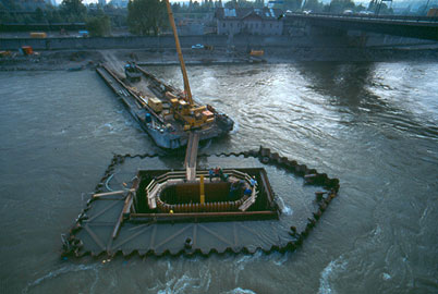 Um die Instandsetzung der Wiener Nordbrücke durchführen zu können, wurde eine parallele Ersatzbrücke vorgeschlagen, die während der Sanierungsarbeiten zwei Fahrstreifen aufnimmt und im Endzustand der bequemen Erreichbarkeit der Donauufer und der Donauinsel durch Fußgänger und Radfahrer dient. Die gesamte Brückenlänge beträgt ca. 800 m, wobei Rampen und Stiegenanlagen hinzukommen. Das Kernstück bildet die stählerne Strombrücke, ein Durchlauftragwerk über 4 x 83 m, das frei über den Strom lanciert wurde. Die Fundierung der Strompfeiler erfolgte im Schutz von Kastenfangedämmen.