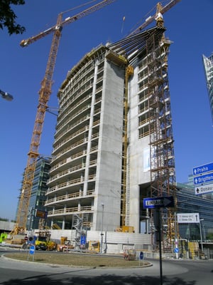 rund 18.000 m² bestehend aus den 18 Bürogeschossen, einer Veranstaltungsebene sowie dem Technikgeschoß wurde auf ein bereits in der ersten Baustufe errichteten Basisbauwerk aufgesetzt. Dieses