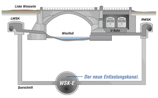 Der Wientalsammelkanal-Entlastungskanal WSK-E liegt im innerstädtischen Bereich zwischen dem Linken (LWSK) und Rechten (RWSK) Wientalsammelkanal unter dem Vorfluter Wienfluss. Die Höhenlage des